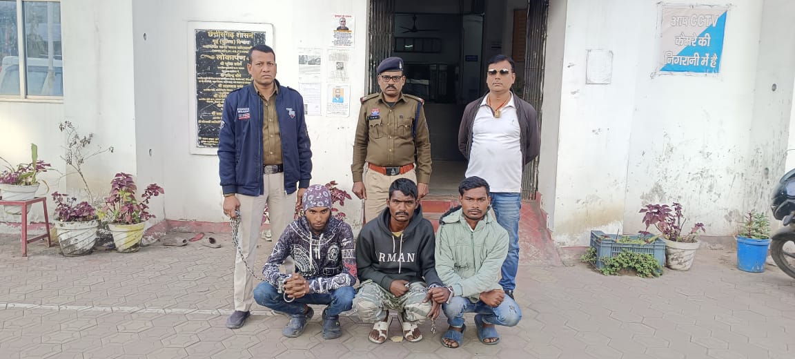 रायगढ़! शहर में सूने मकानों को निशाना बनाकर चोरी करने वाले तीन शातिर बदमाशों को कोतवाली पुलिस ने गिरफ्तार करते हुए नकबजनी के दो मामलों का खुलासा किया है। पुलिस ने आरोपियों के कब्जे से सोने-चांदी के जेवरात एवं अन्य सामान कुल ₹5 लाख 16 हजार कीमत का बरामद किया है।