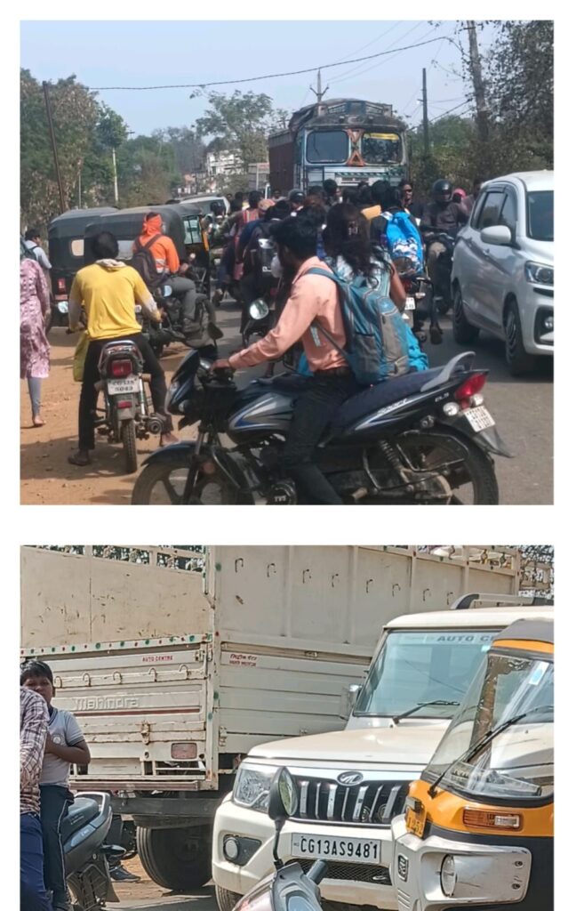 घरघोड़ा!छाल रोड पर स्कूली समय में लागू नो-एंट्री नियम इन दिनों केवल कागजों तक सीमित नजर आ रहा है। सुबह और दोपहर के व्यस्त स्कूल टाइम में भी भारी वाहन धड़ल्ले से सड़क पर दौड़ते दिख रहे हैं, जिससे स्कूली बच्चों और अभिभावकों की सुरक्षा पर गंभीर खतरा मंडरा रहा है। हैरानी की बात यह है कि रोजाना हो रहे इस उल्लंघन के बावजूद पुलिस प्रशासन की ओर से कोई ठोस कार्रवाई नजर नहीं आ रही।
