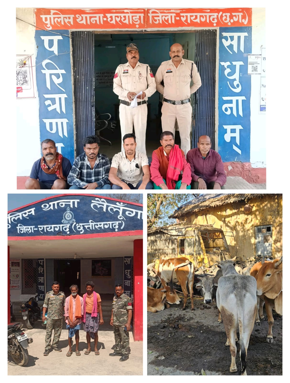 घरघोड़ा व लैलूंगा थानों की संयुक्त कार्रवाई, 18 गौवंश मुक्त