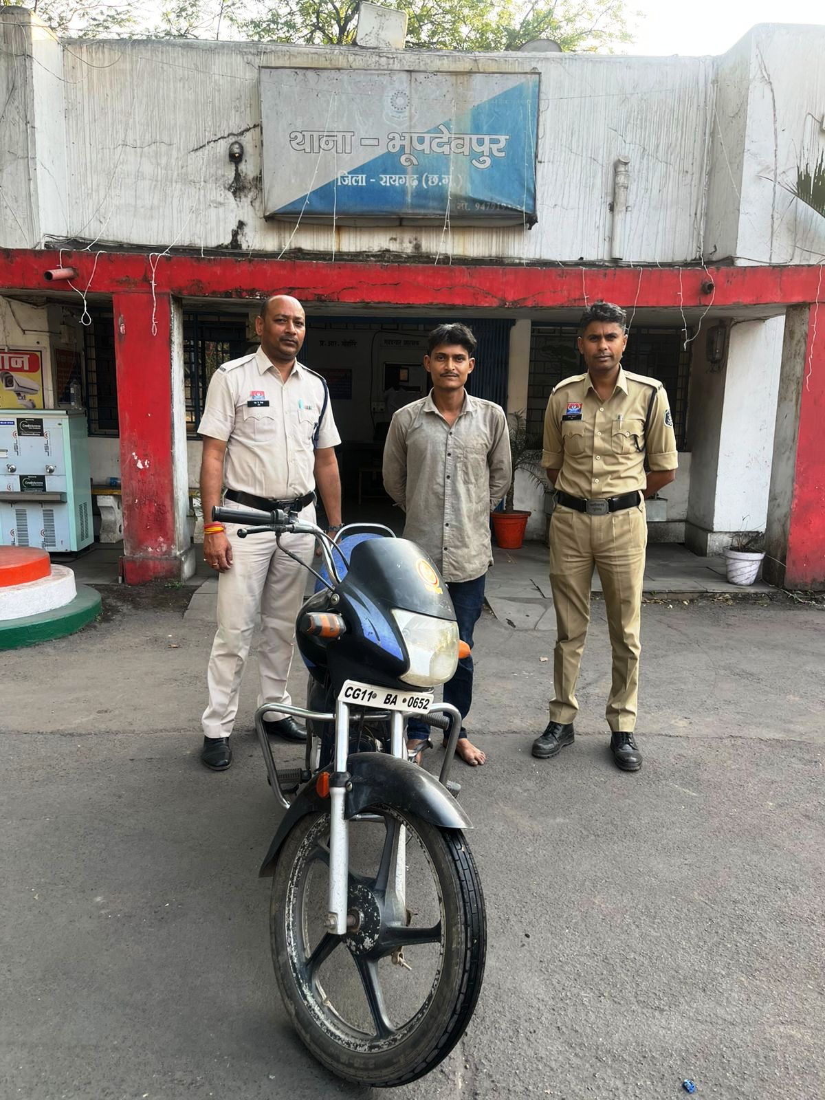 भूपदेवपुर पुलिस से *आरोपी सुधांशु देहरी पिता भूगीलाल देहरी, उम्र 29 वर्ष, निवासी आमापाली थाना रेंगाली जिला झारसुगुड़ा (ओडिशा), हाल मुकाम नहरपाली थाना भूपदेवपुर जिला रायगढ़ (छत्तीसगढ़)* से चोरी मोटरसाइकिल जब्त कर आरोपी को गिरफ्तार कर कल न्यायिक रिमांड पर भेज दिया है। संपूर्ण कार्रवाई में थाना प्रभारी भूपदेवपुर उप निरीक्षक संजय नाग और उनकी टीम की अहम भूमिका रही है ।