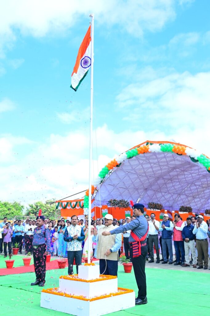 घरघोड़ा || एनटीपीसी तलईपल्ली कोयला खनन परियोजना ने उत्साह और गौरव के साथ देश का 79वां स्वतंत्रता दिवस मनाया। परियोजना के कोशल विहार आवासीय परिसर में आयोजित मुख्य समारोह की शुरुआत अखिलेश सिंह, परियोजना प्रमुख, तलईपल्ली कोयला खनन परियोजना द्वारा परेड का निरीक्षण कर ध्वजारोहण और राष्ट्रगान के साथ की गई, जिसके बाद डीजीआर सुरक्षा सेवा के कर्मियों द्वारा गार्ड ऑफ ऑनर प्रस्तुत किया गया। जिसके बाद सुरक्षा कर्मियों ने मुख्य अतिथि के सामने सम्मानपूर्वक ‘गार्ड ऑफ ऑनर’ प्रस्तुत किया।