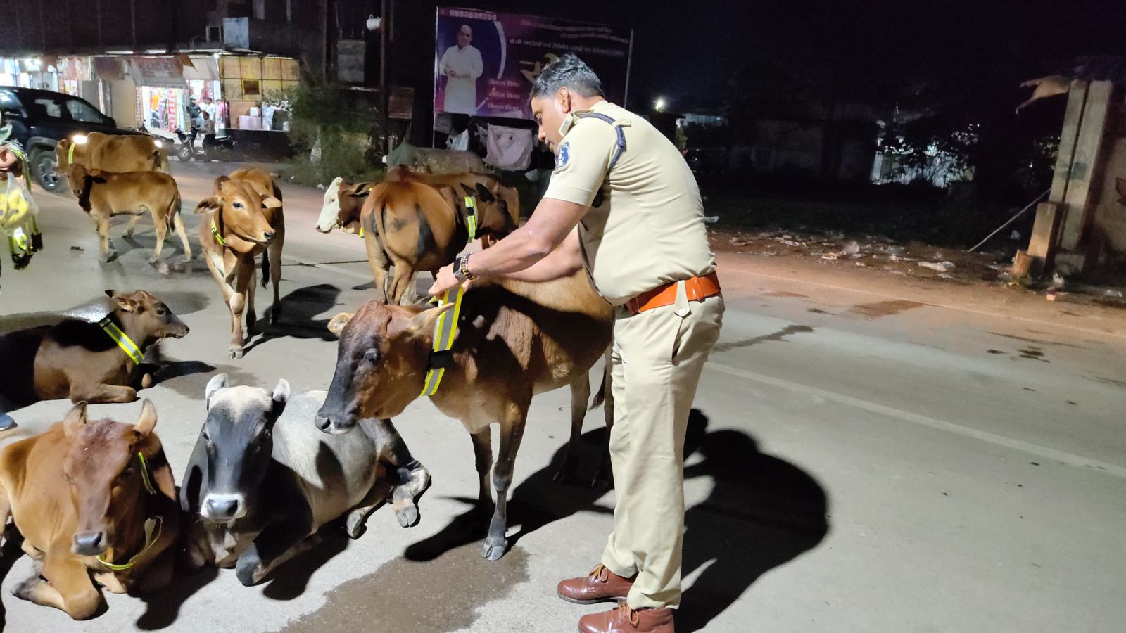 सड़क सुरक्षा में घरघोड़ा पुलिस की सराहनीय पहल, मवेशियों के गले में लगाए गए रेडियम कॉलर टैग